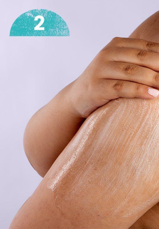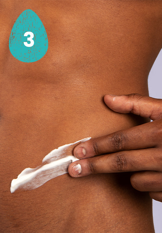 Massage a generous amount into the bikini line, pubic area, underarms and other hair-removed areas, then use over the rest of your body if desired.