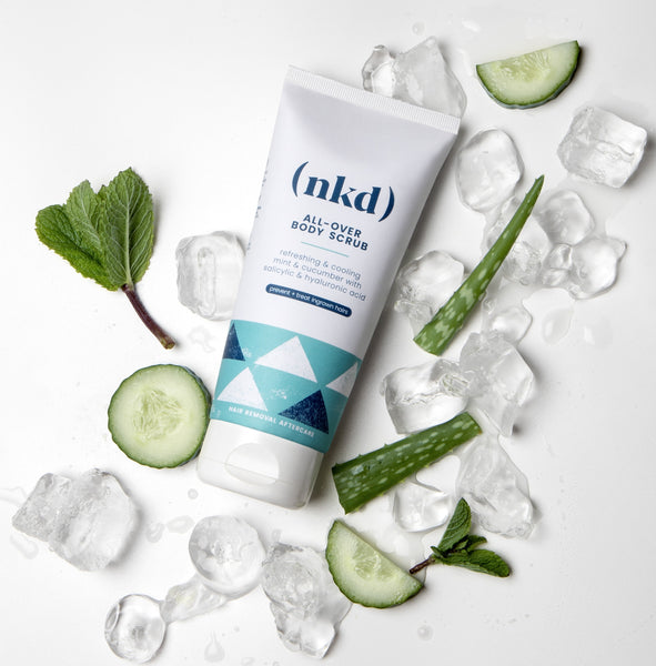 The (nkd) All Over Body Scrub with Salicylic Acid & Hyaluronic Acid will remove dead skin cells, unblock pores and release hair follicles, and is suitable for use all over, including intimate areas.